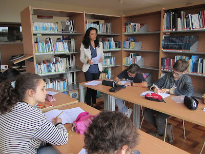 E, mais uma vez, a biblioteca é o espaço onde a aula de Português acontece, desta vez para preparar o encontro com a escritora Ana Saldanha.
